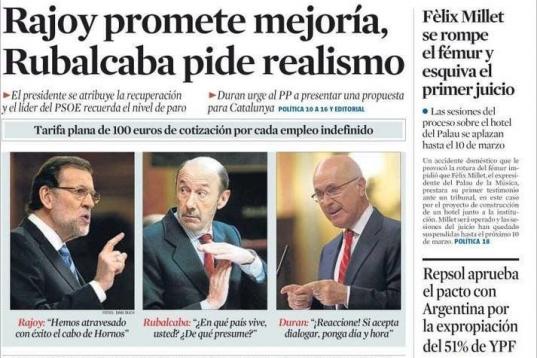 Alfredo Pérez Rubalcaba arrancó de una forma similar su intervención del martes cuando, al iniciar su intervención, espetó al presidente del Gobierno: "¿En qué país vive, presidente?".