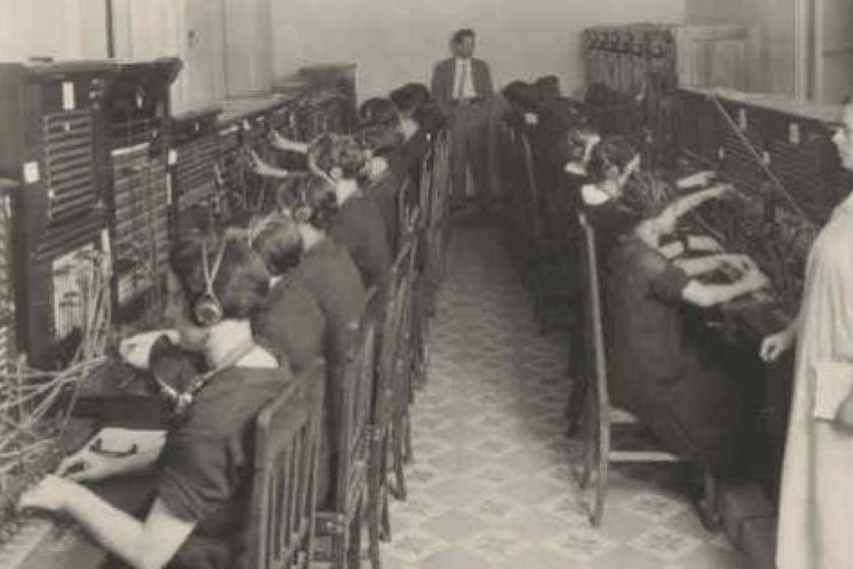 Había clases para aprender a manejarlos, los tendidos de cables eran una innovación en el paisaje y alrededor de cada llamada había una iconografía que hoy resulta así de pintoresca. Buscamos en el archivo fotográfico del Kaleidoscopio de Fundación Telefónica algunas imágenes de la época: