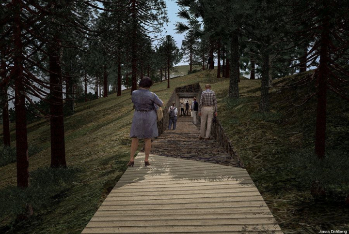 El proyecto de Dahlberg recoge también la idea de un segundo monumento conmemorativo en Oslo usando precisamente la piedra recogida al excavar la hendidura de la isla y los árboles que sean retirados.