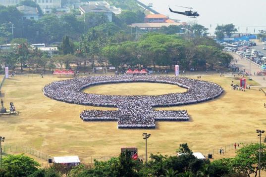 Cerca de 10.000 mujeres se han reunido en Manila para formar el símbolo de la mujer
