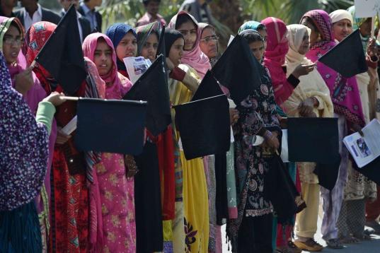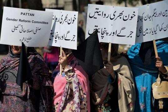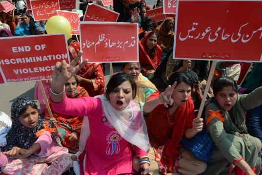 También en Pakistán activistas se han manifestado para resaltar los derechos de las mujeres en un país donde cientos de mujeres y niñas son asesinadas cada año después de ser acusadas de difamar el honor de su familia.