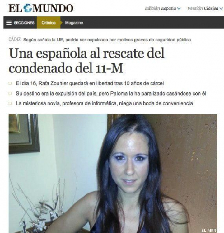 Precisamente sobre el destino de Zouhier publicó el diario El Mundo una información el pasado 2 de marzo en la que se asegura que una mujer, la madrileña Paloma Álvarez, podría mantenerle en España.