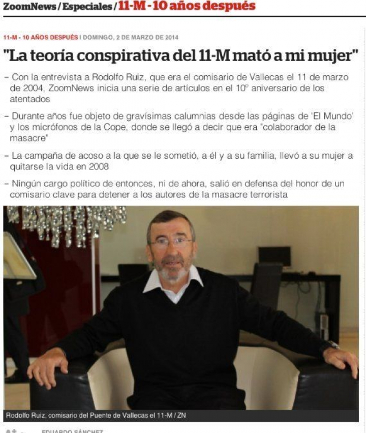 El primero ha sido el de Rodolfo Ruiz, comisario de Vallecas aquel 11 de marzo de 2004, quizás la persona a la que más daño hicieron las teorías conspirativas.