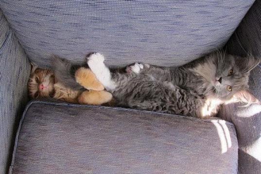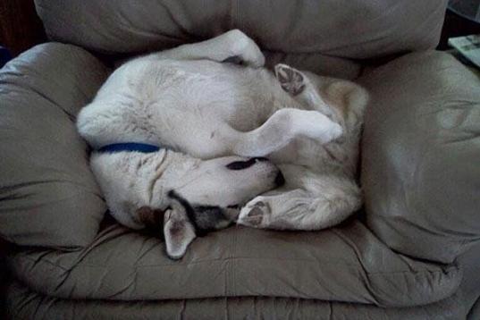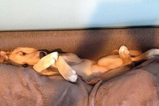A veces, no les compramos accesorios adaptados a sus necesidades y los animales tienen dificultades para encontrar un rincón mullido para descansar. Hasta el punto de que les obliga a adoptar posturas insólitas... y divertidas.