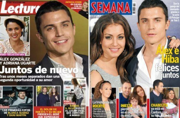 Hiba Abouk y Álex González "felices juntos", dice Semana en su portada. "Son la pareja del momento gracias a la serie El Príncipe de Telecinco", añade. Por su parte, Lecturas opta por un Álex González y Adriana Ugarte "juntos de nuevo". Y explica que "tras varios meses separados dan una segunda oportunidad a su amor.
