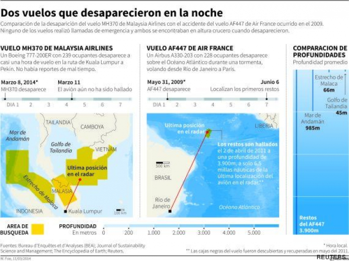 Comparativa entre el avión de Air France y el de Malaysia Airlines