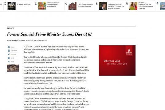La muerte de Suárez, en los medios internacionales