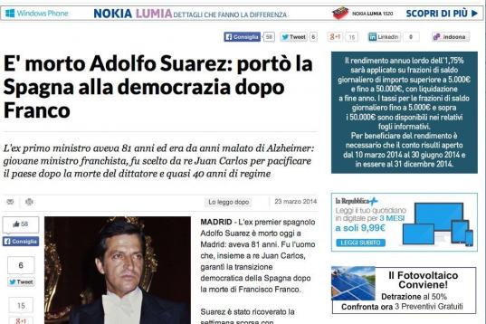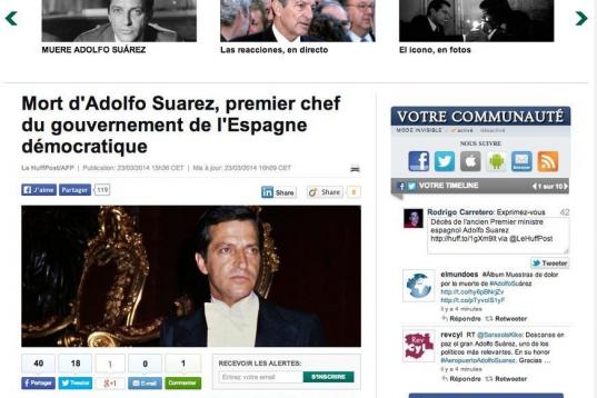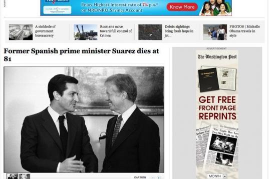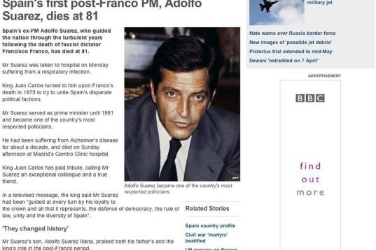 La muerte de Suárez en la prensa extranjera: "Llevó a España a la democracia"