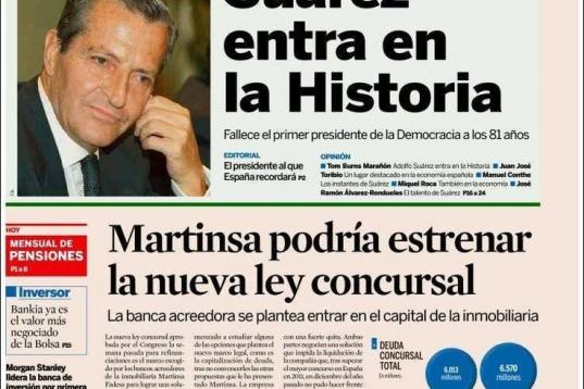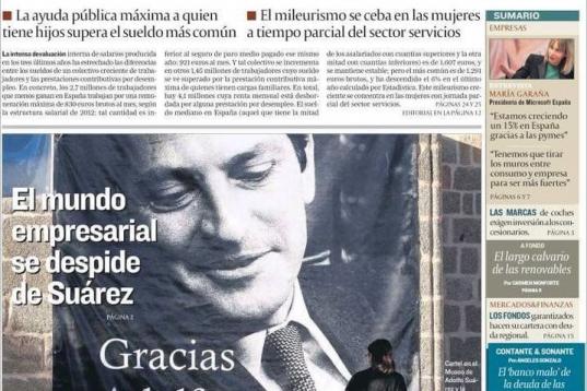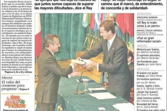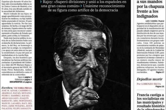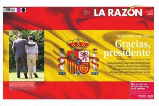 La prensa despide a Suárez: Desde el "mito" a una gran bandera de España (FOTOS)