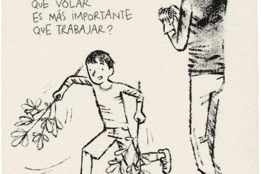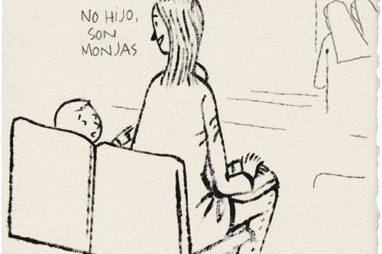 Así lo explica en el prólogo de Cuaderno de frases encontradas, un libro que ha autoeditado a partir de las viñetas colgadas durante varios años en su blog y que sirve de catálogo en tres idiomas (españoles, inglés y francés) de la exposición con los originales de esta serie que acoge el Museo de la Ilustración ABC de Madrid hasta este domingo, 30 de marzo. "No me interesa especialmente la vida de las personas que no conozco, pero me gusta disfrutar de esos momentos que el azar ha querido poner delante de mis ojos (y de mis oídos)", añade en el recopilatorio.