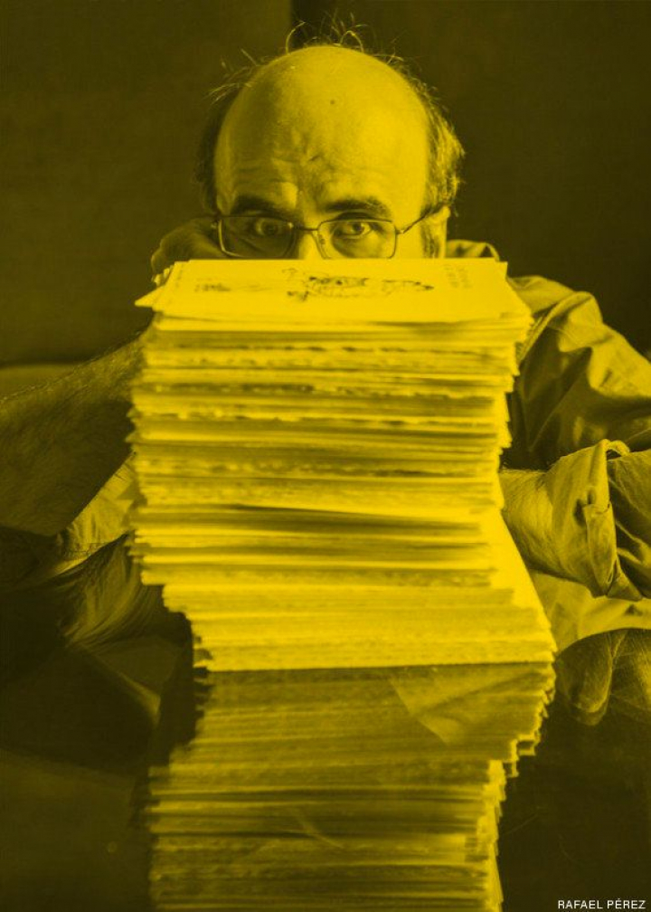 Juan Berrio, retratado por Rafael Pérez con los originales de sus frases encontradas.