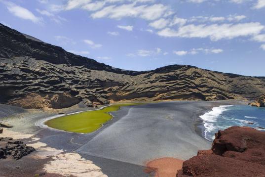Al suroeste de la canaria isla de Lanzarote se encuentra el charco de los Clicos, también llamado el Lago Verde debido al color de sus aguas, fruto de su entorno volcánico. El azul del agua del mar, la playa negra y el lago verde forman un con...