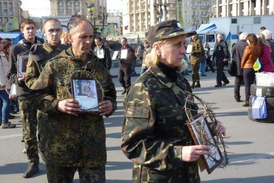 Con todo, las amodorradas milicias recibieron atención este domingo. La Iglesia Ortodoxa ucraniana, para recordar a los caídos 40 días después de la matanza en las calles del centro, sacó sus mejores túnicas y crucifijos para montar una misa de gran solemnidad y tambores lentos. Kiev se transformó en un inmenso entierro; las ancianas dejaban rosas entre las barricadas, junto a miles de velas, banderas, cruces y fotografías de víctimas; caminaban del brazo y se enjugaban las lágrimas con la misa de fondo. El saludo oficial de la plaza seguía siendo el mismo:
