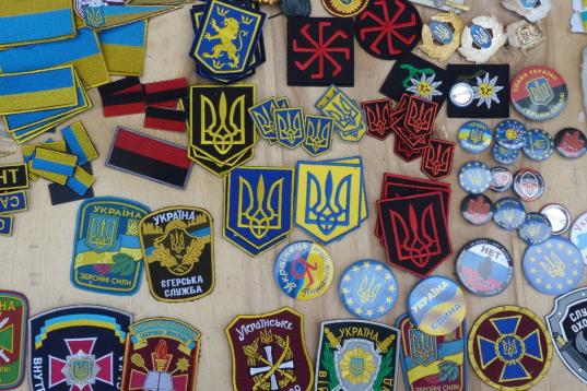 El abanico miliciano es variado; sus miembros, adscritos a diferentes grados de derecha nacionalista, provienen de todos los rincones de Ucrania y usan múltiples símbolos, lemas y estéticas de otra época. Unos reflejan el orgullo guerrero de los cosacos y las heridas incurables de la Guerra Mundial (cosas que se tarda en leer; yo no puedo). Otros parecen jóvenes desfavorecidos que no dudaron en ponerse un brazalete a cambio de una misión y un plato de rancho.