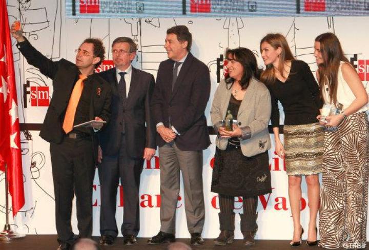 La princesa Letizia se ha unido a la moda del 'selfie' este martes de la mano del mago More, durante la entrega de los premios infantiles y juveniles Barco de Vapor y Gran Angular, de la fundación SM.
