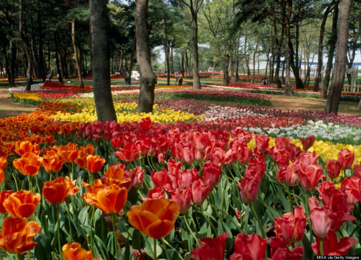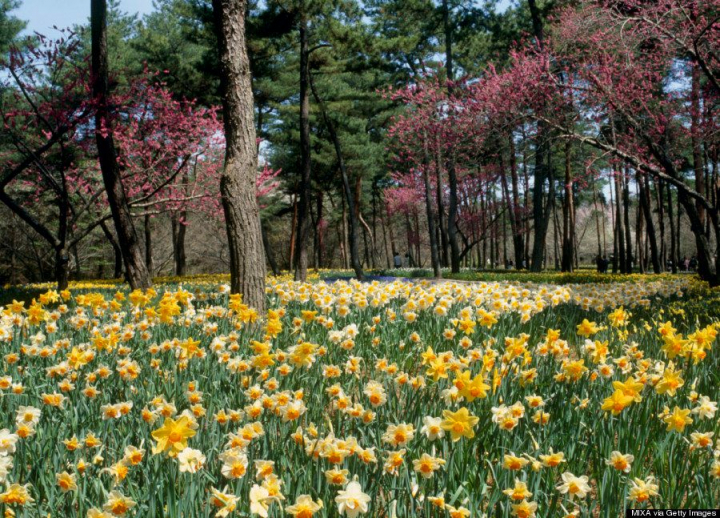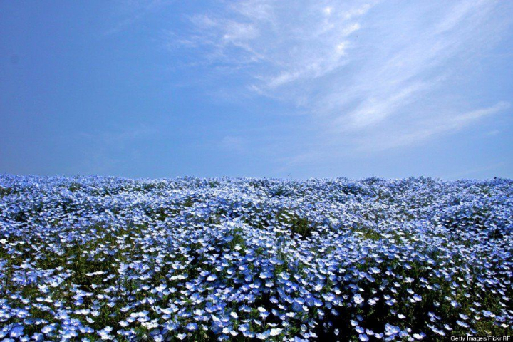 Es el parque Hitachi de Japón. Situado en la costa, a dos horas de Tokio, está en la ciudad de Hitachinaka, en la prefectura de Ibaraki. Cada abril, las 190 hectáreas del parque se transforman en un océano de flores azules que los ciudadanos llaman la "armonía de la nemophila", la flor azul que protagoniza estas fotos. El parque también acoge un millón de narcisos y a cerca de 100 variedades de tulipanes.