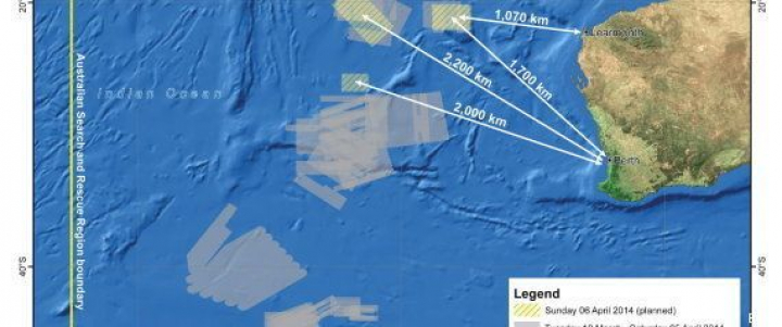 Hasta diez aviones militares, dos aviones civiles y trece embarcaciones trabajan este domingo en las labores de búsqueda del vuelo MH370 desparecido hace casi un mes con 239 personas a bordo en una zona ubicada a unos 2.000 kilómetros de la costa suroeste de Australia.