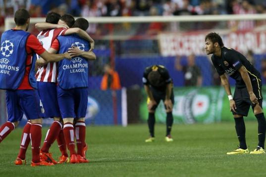 El Barça era una marioneta en manos del Atleti. No trenzaba jugadas, sólo disponía de balones en largo que se perdían en carreras frustradas de Neymar o de Messi. En una de esas, el brasileño peleó hasta que tuvo franca la pelota. En una décima de segundo, inventó un túnel precioso a Tiago y, con el área para él, cedió a Messi, que falló con la zurda.