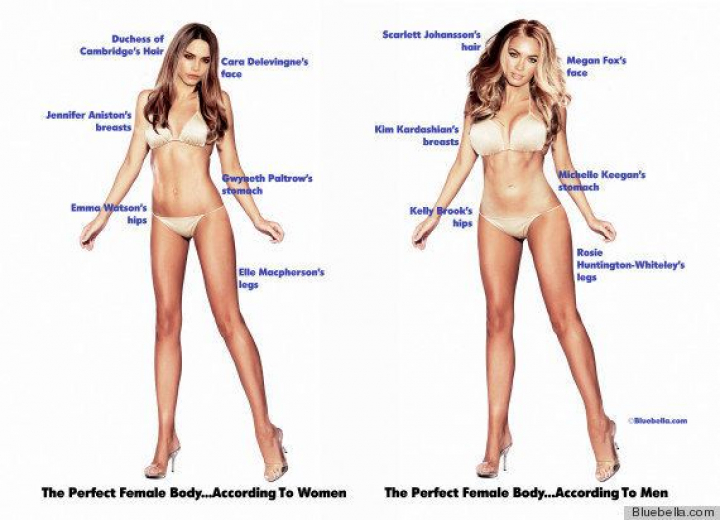 Se descubrió entonces que a las mujeres les gustaría tener el pelo de Kate Middleton, pero los varones prefieren el de Scarlett Johansson. Cuando se trata de las curvas, los hombres votan por las de la modelo Kelly Brooks mientras que ellas optan por las caderas estrechas de Emma Watson. En cuanto al pecho, el duelo es entre Jennifer Anniston (según ellas) y Kim Kardashian (según ellos).
