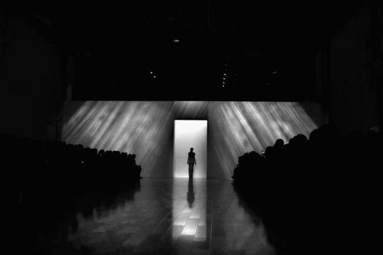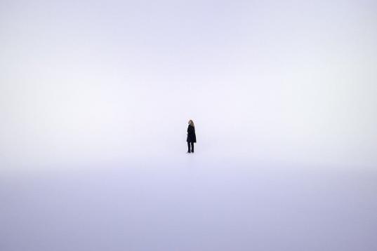 Una visitante camina por la instalación de Doug Wheeler en la muestra del veneciano Palazzo Grassi. Las exposiciones The Illusion of Light (La Ilusión de la Luz) y Irving Penn permanecerán abiertas hasta finales de diciembre.