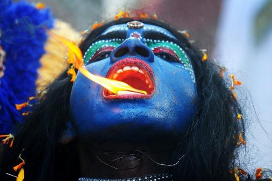 Una artista india disfrazada de la diosa hindú Kali participa en una procesión del festival Ram Navami en Allahabad. Los hindúes recordaron así el pasado día 8 el nacimiento del dios Rama, que pone fin a un ayuno de nueve días.