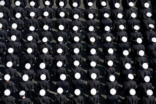Vista aérea de la graduación de la Prefectura de Policía francesa durante la visita del nuevo ministro del Interior, Manuel Valls.