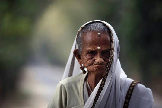 Una mujer india sale de un colegio electoral en Majuli, una gran isla situada en el río Brahmaputra, en el estado Assam del noreste de India. Las elecciones indias son las más grandes del mundo.