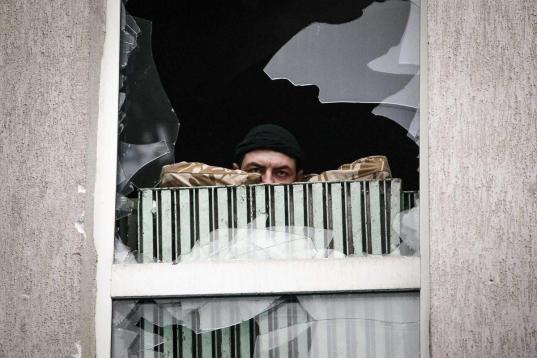 Un militante prorruso se asoma a la ventana de uno de los edificios ocupados del servicio de seguridad estatal de Luhansk (Ucrania). Los grupos armados que defienden la anexión a Rusia rechazaron esta semana la amnistía que ofrecía el Gobiern...