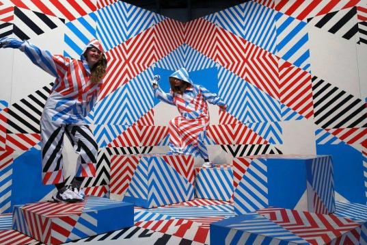 Dos mujeres recorren la instalación Infinity Island (Isla del Infinito) del artista irlandés Maser. La obra forma parte de la exhibición OM-D- Photography Playground de Berlin.