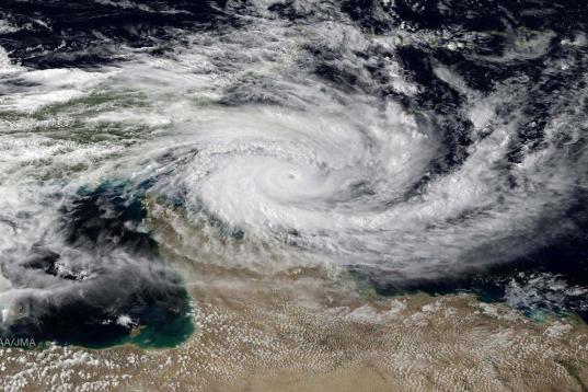 El huracán tropical Ita, de categoría 5, acercándose a la costa norte de Queensland, en Australia.