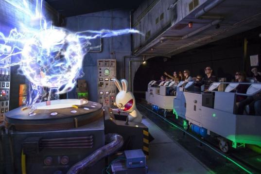 Los famosos Rabbids, los conejos más gamberros de los videojuegos, dan el salto y se transforman en una atracción en la que se pasea con ellos recorriendo distintas épocas históricas en cinco dimensiones.