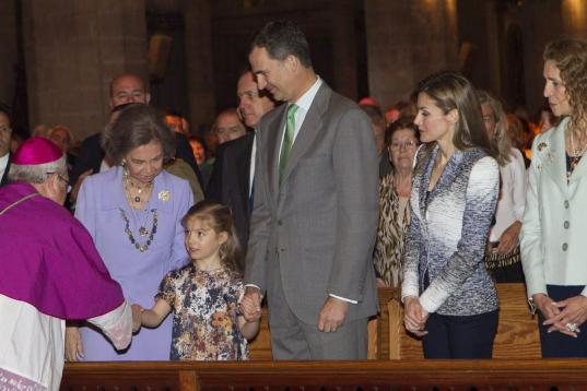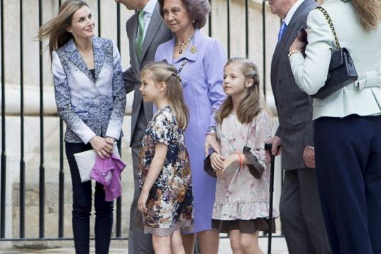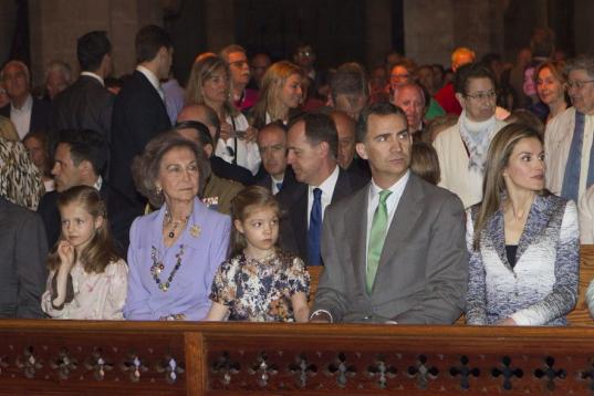 La Familia Real ha asistido este domingo a la misa de Pascua en la catedral de Palma, donde estaban pasando las vacaciones de Semana Santa. Faltaba la rama Urdangarin de la familia, que lleva 30 meses apartada de la agenda oficial por sus problemas con la justicia, y los hijos de la infanta Elena, de vacaciones con su padre Jaime de Marichalar.