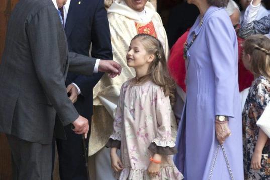 Fotos de la Familia Real en Palma: los reyes, los príncipes, Leonor y Sofía y la infanta Elena en la misa de Pascua