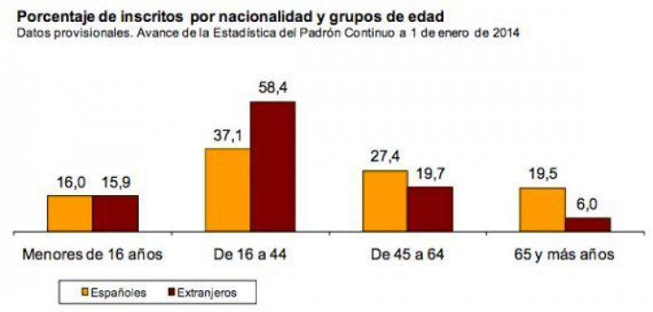 Habitantes España 2014: 46.725.164 inscritos en el padrón, 400.000 menos en un año