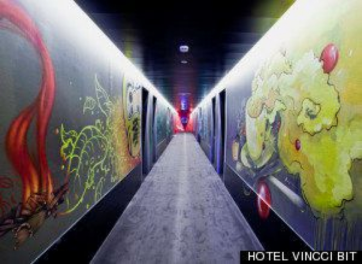 En el Hotel Vincci Bit de Barcelona han dado importancia a una decoración original y que cambia en cada espacio como motor de energía positiva: comenzar el día con buenas vibraciones de artistas cercanos. Se trata, según Aixa Rodríguez del Alisal, directora de marketing y comunicación de la cadena, de ir más allá de la triple D (dormir, ducharse y desayunar). El Bit está situado en un edificio pensado “para visitar planta por planta”, ya que cada uno de sus diez pisos cuenta con las obras de un creador diferente. Alex Trochut, Matthew Moore y Aleix Gordó son algunos de los ilustradores, diseñadores y estrellas del arte urbano que ocupan los murales de sus distintos pasillos.