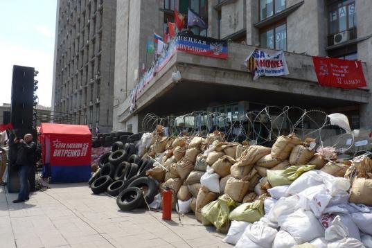 El razonamiento es el siguiente: este edificio no ha sido ocupado, sino liberado. El Gobierno interino de Kiev es golpista (pues Yanukóvich fue expulsado por la fuerza) y fascista (dado que varios de sus miembros vienen de la extrema derecha), y por tanto el gobernador regional que ha nombrado (el oligarca Serhii Taruta) no es legítimo. Por eso, el pueblo, representado por la República de Donétsk, ha tomado estas y otras dependencias para exigir un referéndum que les permita mayor autogobierno y seguir cerca de Rusia por motivos sentimentales y económicos.
