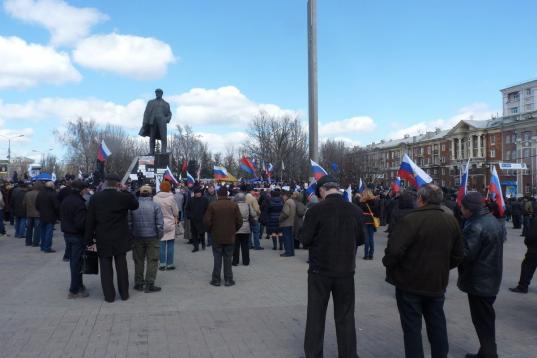 Bajo la perilla de Lenin (que lleva boina y tiene una mano en el bolsillo; es su estatua más amable), Dima comenzó a venir a las manifestaciones prorrusas cada fin de semana. Hoy no sólo comunica, también organiza la información: todo aquel que desee subir al pequeño escenario tras las barricadas tiene que hablar con Dima para que no haya sorpresas. "Una vez, un señor comenzó a pedir la vuelta de Yanukóvich [expresidente depuesto]", me cuenta. "Y eso no es algo que muchos deseemos por aquí".