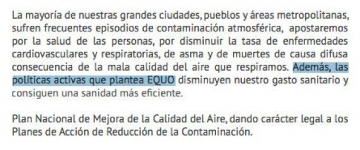 El plagio, captado por eldiario.es, se puede observar en el apartado "Medio Ambiente", donde aparece el siguiente párrafo extraído casi literalmente del programa de la organización verde en su apartado "Aire" dedicado a la contaminación medioambiental: