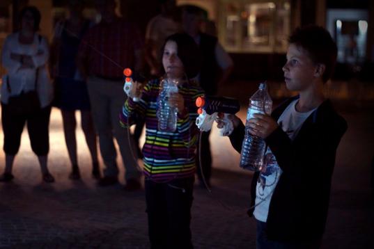 Pistolas de agua, pinceles, manos mojadas, espray con agua en su interior o cualquier objeto húmedo son las herramientas para dibujar o escribir mensajes que brillan como estrellas.