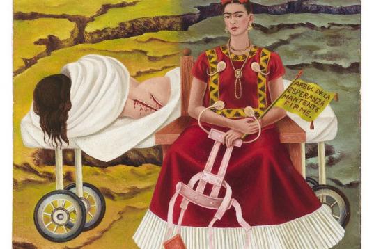 Nacida en 1907, Kahlo contrajo polio de niña, enfermedad que afectó gravemente a una de sus piernas. A los 18 años, sufrió un grave accidente de tranvía en el que se rompió la pelvis y la espalda, y a consecuencia del cual su vida se convirtió en un bucle de dolor físico, operaciones y calmantes adictivos. De esa mala salud vino su infertilidad y un aborto. Kahlo murió en 1954, apenas un año después de su única exposición en solitario. Pero a pesar de tanto dolor, o quizá precisamente a causa de él, Kahlo creó una serie de retratos desgarradores, en los que mezcla sus verdades más íntimas con sus fantasías más exuberantes, realizados con idéntica intensidad.