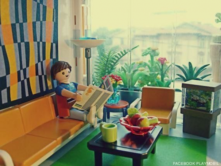Los peinados con picos tampoco se llevan. Ahora hay chicos con el pelo afro o alguno como Tim, el Playmobil viajero, con flequillo de lado que podría convertirlo en un moderno guaperas de Malasaña. Ellas también llevan flequillo, pelo corto, largo, trenzas, coleta o moño para los días de fiesta. Y sus casas... en el salón de aquí abajo podrían vivir perfectamente Don y Megan Draper de Mad Men.