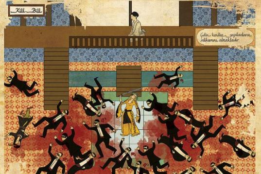 El arte otomano es rico en color pero pobre en movimiento. ¿Te imaginas una de las escenas sangrientas de Kill Bill representada al estilo de este arte medieval islámico? ¿Cómo quedaría Uma Thurman perfilada bajo el hieratismo de los dibujos otomanos?