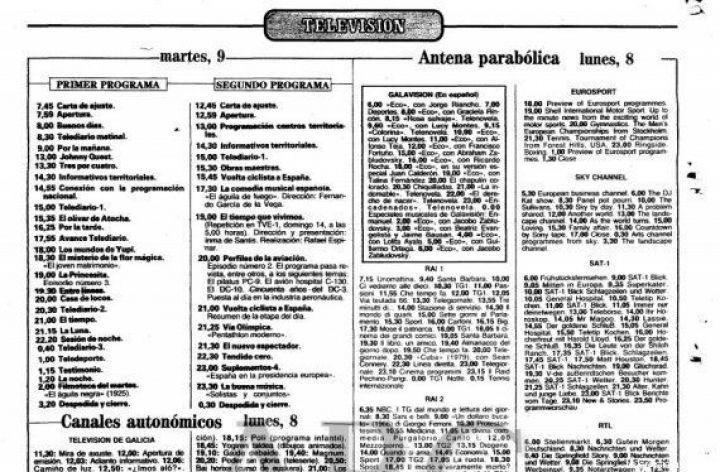 - Si pretendías desayunar viendo la tele igual te encontrabas sólo con esto. Pasadas las 7.00 de la mañana se estaría emitiendo la carta de ajuste en los dos únicos canales posibles (TVE1 y TVE2). Para los dibujos había que esperar a la tarde, con Los mundos de Yupi.