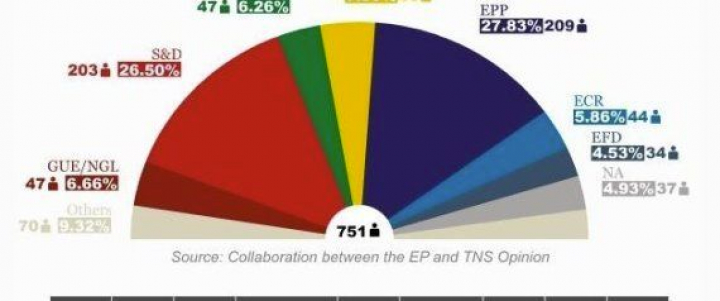 Es el número de escaños que tendría el PPE en estas elecciones, según la última proyección del Parlamento Europeo. Los socialistas europeos alcanzarían los 203. Sin embargo, los grupos políticos europeos se conforman tras las elecciones con partidos nacionales de toda condición y tras complejas negociaciones, por lo que los grupos europeos sólo se determinarán con fiabilidad tras los comicios.