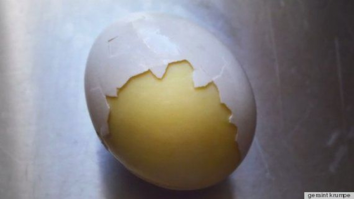 El huevo se coloca dentro del recipiente, tal y como se puede ver en el vídeo de demostración de más arriba. Después toca agitar y dejar que la fuerza centrípeta haga su trabajo.