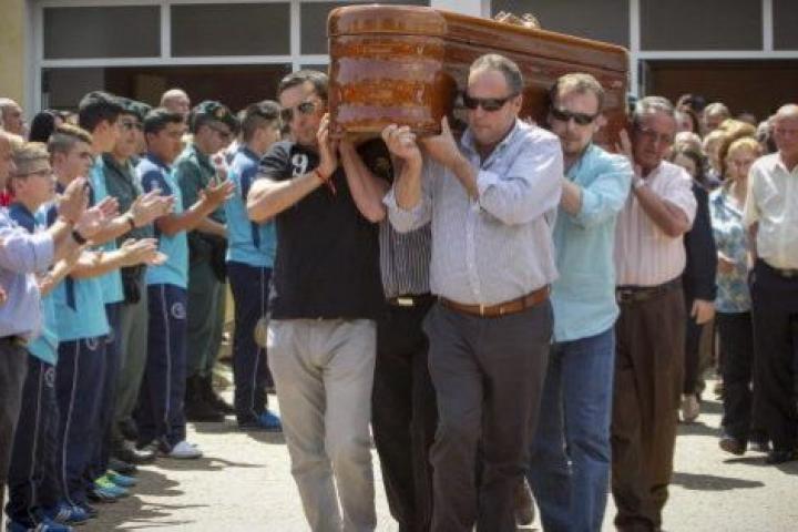 Cuatro de los féretros han sido portados a hombros desde el polideportivo municipal hasta el cementerio de Monterrubio de la Serena, situado a unos 500 metros, mientras que el quinto ha sido trasladado en coche a la pedanía de La Nava, de la que era vecino el menor fallecido, y que está situado a una veintena de kilómetros.