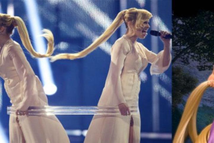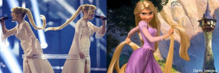 Rusia llevó a dos hermanas, las gemelas Tolmachevy. Ellas eran dos, pero sus dos coletas unidas recordaban a las de una sola persona: la de Rapunzel, la princesa Disney de los largos cabellos protagonista de la película Enredados. Eso sí: también se han llevado largos abucheos cada vez que recibían puntuaciones. Quizá la única referencia política de la gala.