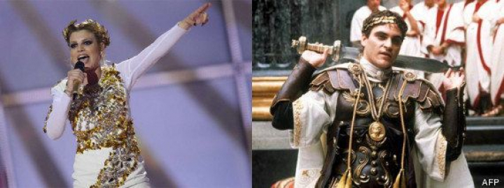 La representante italiana quería cantar una en italiano y muy italiana... tan, tan de su país que quizá se ha remontado demasiado hacia atrás en las raíces de su patria. ¿No tenía un puntito de gladiadora?