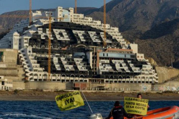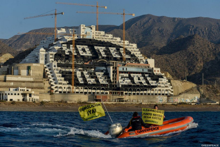 Greenpeace ha indicado que el hotel de El Algarrobico "es un ejemplo reconocido internacionalmente de la impunidad con la que se ha actuado en la costa del país en los últimos años, donde aún se pretende hacer prevalecer la normativa urbanística sobre la ambiental".