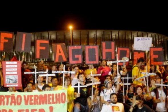 Además de la reivindicación de los "sin techo", en la mayoría de las doce sedes del Mundial ha tenido lugar una protesta centrada concretamente en el rechazo a las millonarias inversiones que el Gobierno hizo en la competición deportiva y que ha reunido a miles de personas bajo la consigna "FIFA go home", "La FIFA no manda aquí" y "Copa sin pueblo, en la calle de nuevo".
